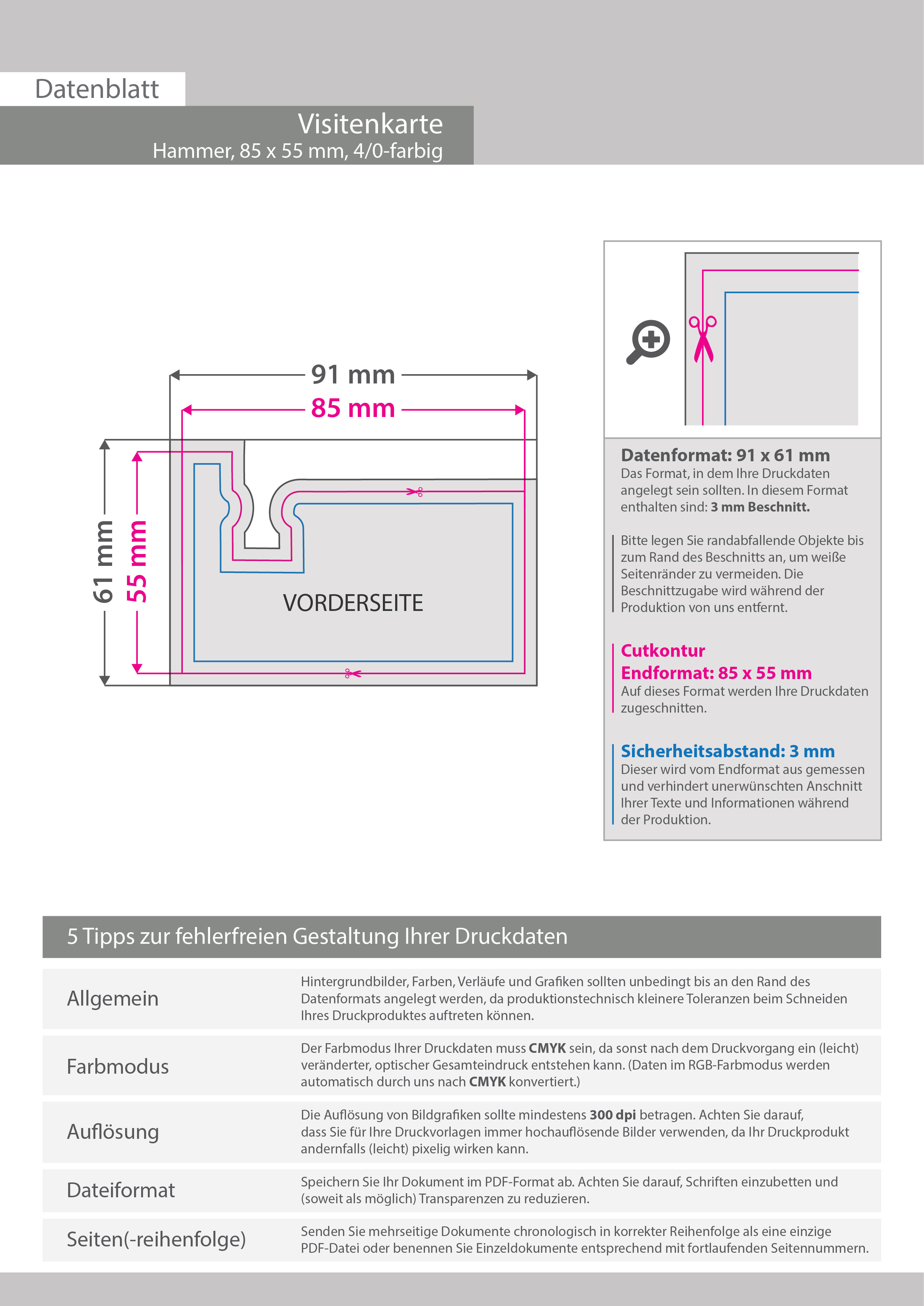 Visitenkarte Hammer, 85 x 55 mm, 1-seitig, 4/0-farbig CMYK