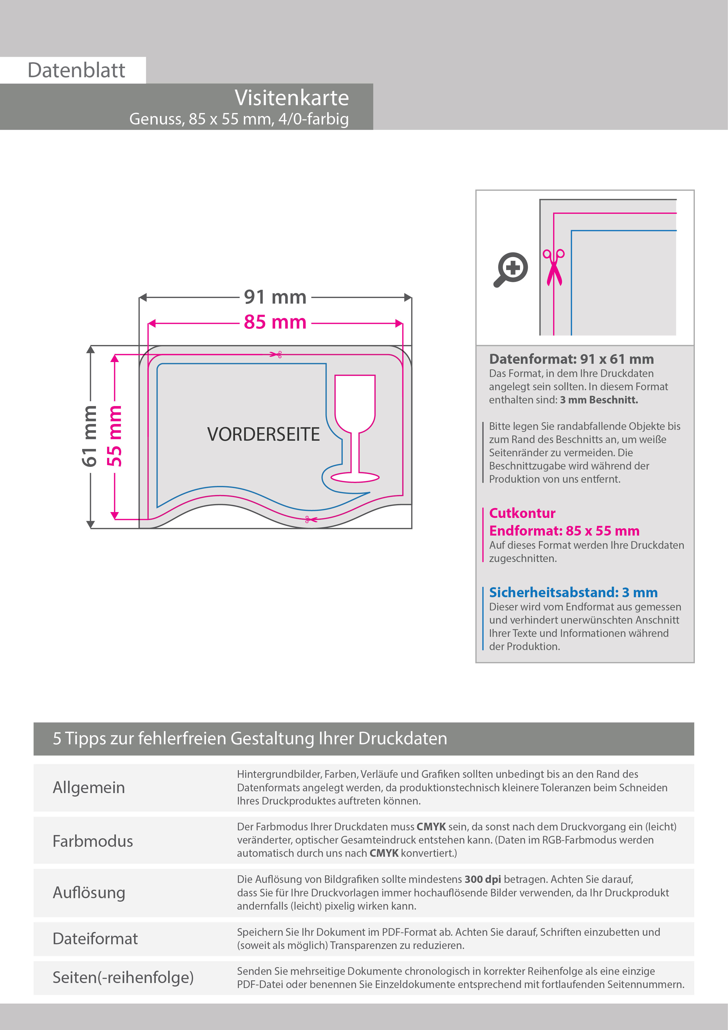 Visitenkarte Genuss, 85 x 55 mm, 1-seitig, 4/0-farbig CMYK