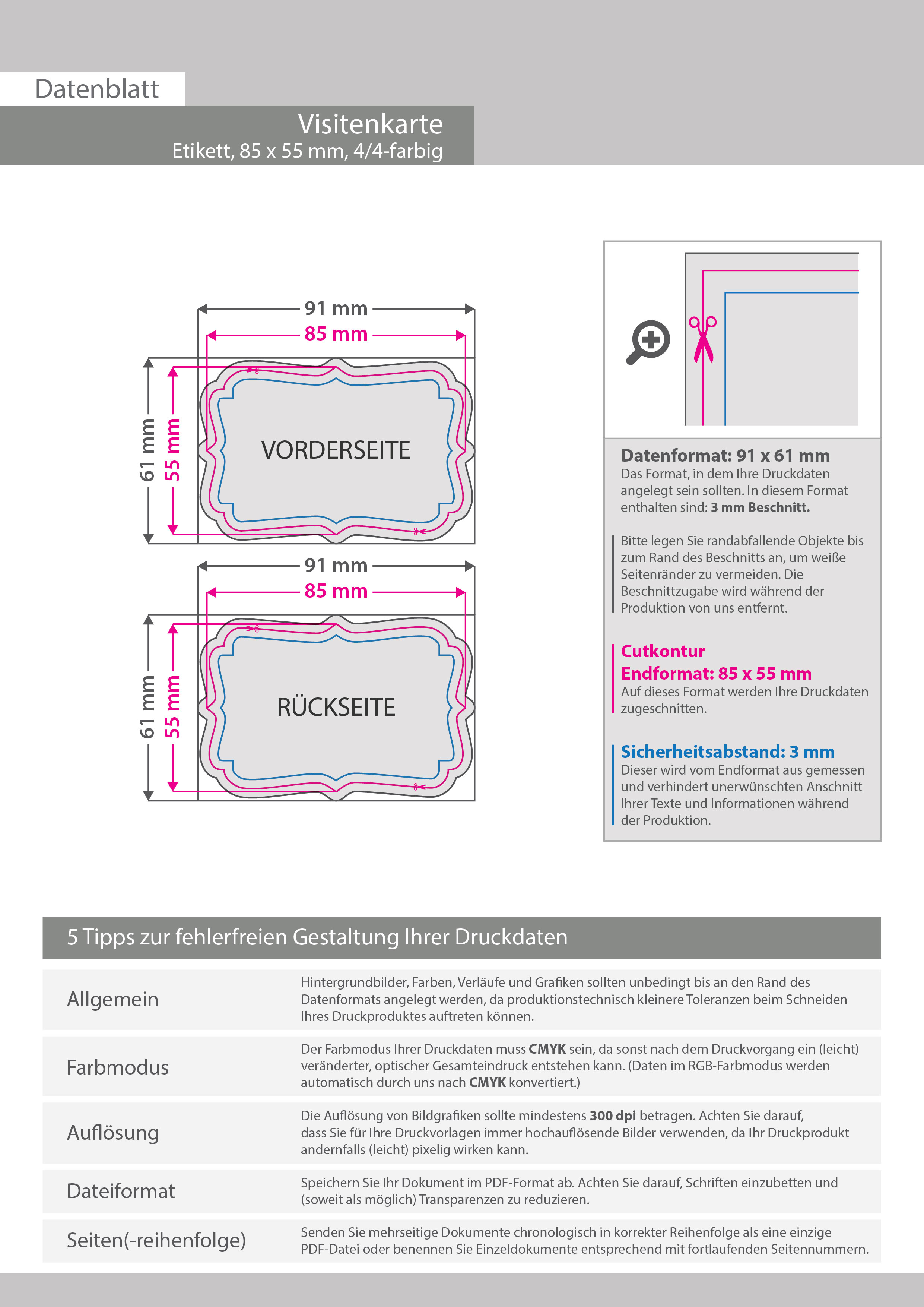 Visitenkarte Etikett, 85 x 55 mm, 2-seitig, 4/4-farbig CMYK