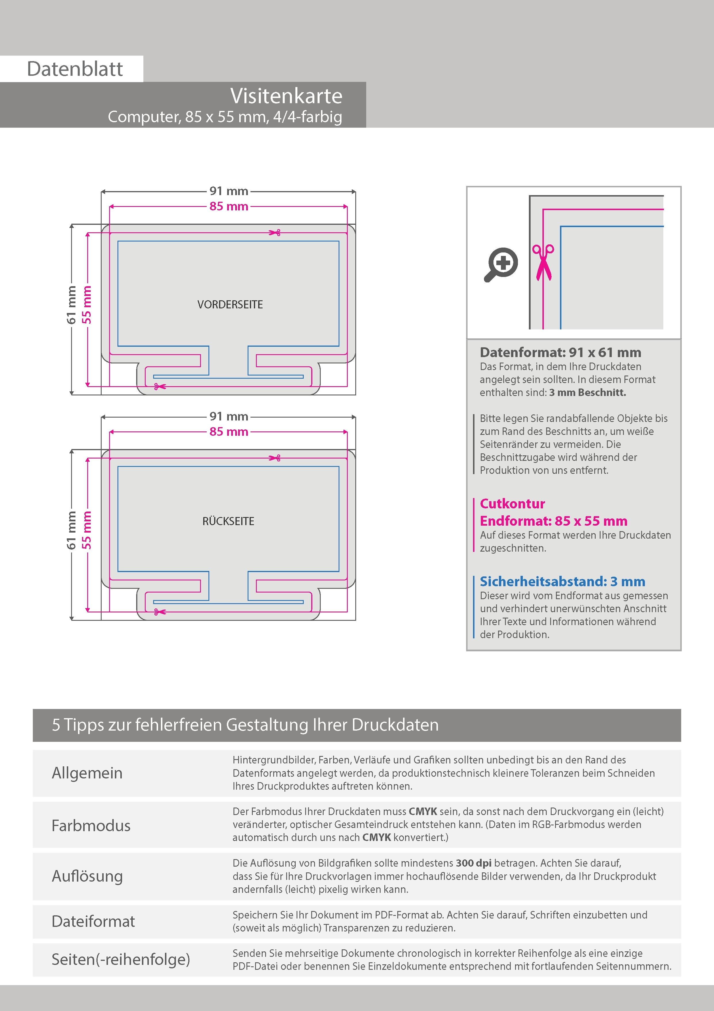 Visitenkarte Computer, 85 x 55 mm, 2-seitig, 4/4-farbig CMYK